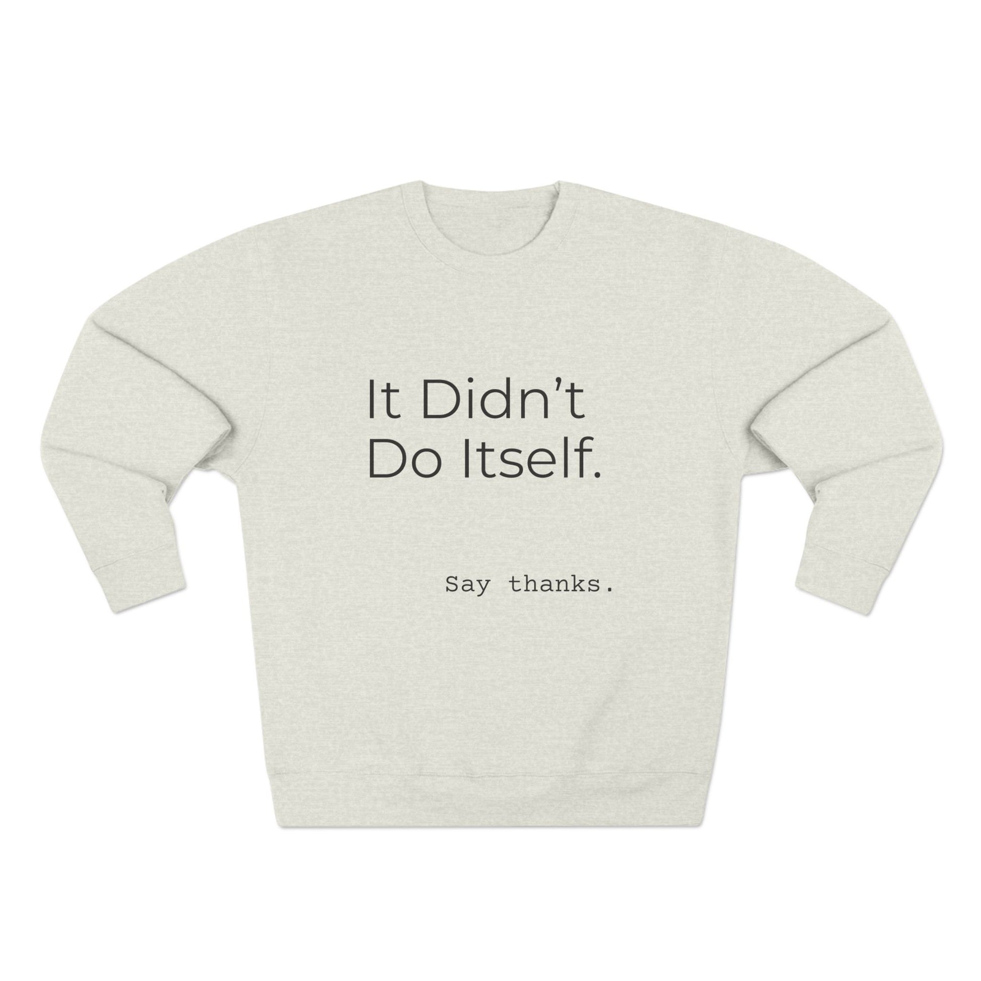 "It Didn't Do Itself" Cozy Gratitude Sweatshirt, Perfect for Gifting, Casual Wear, Say Thanks Sweatshirt, Unisex Crewneck, Appreciation Gift