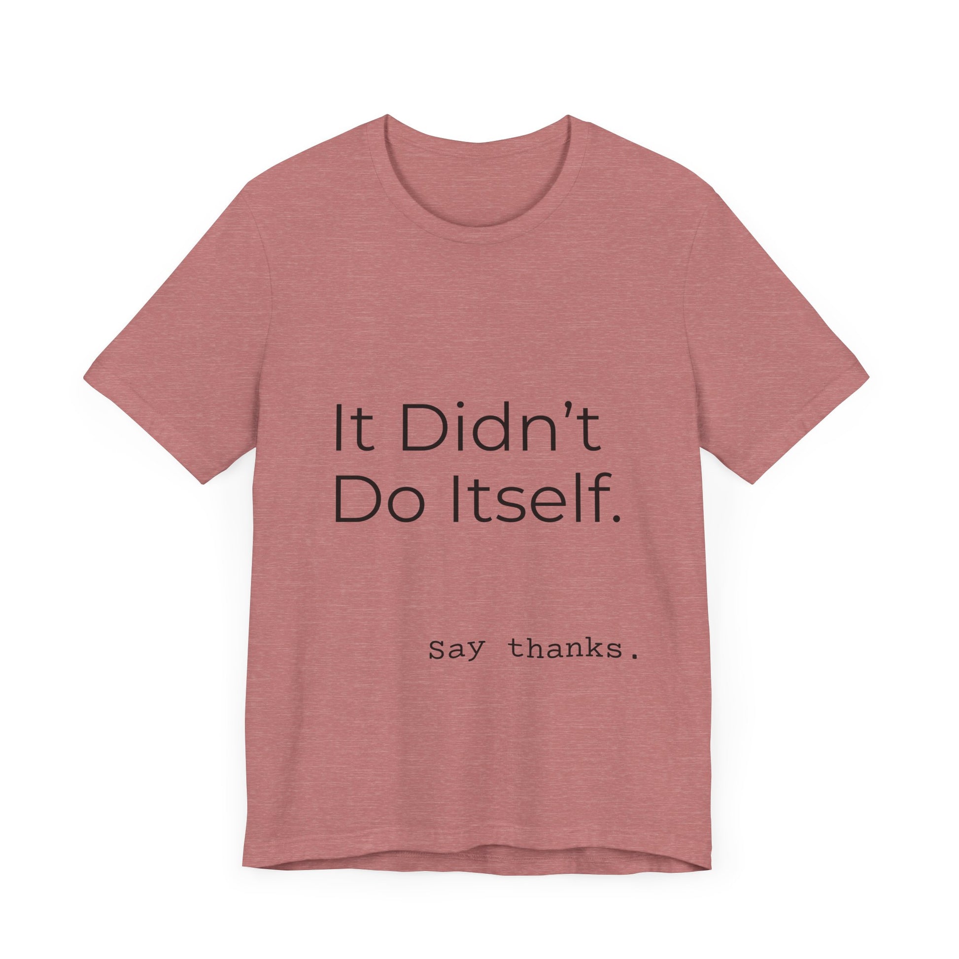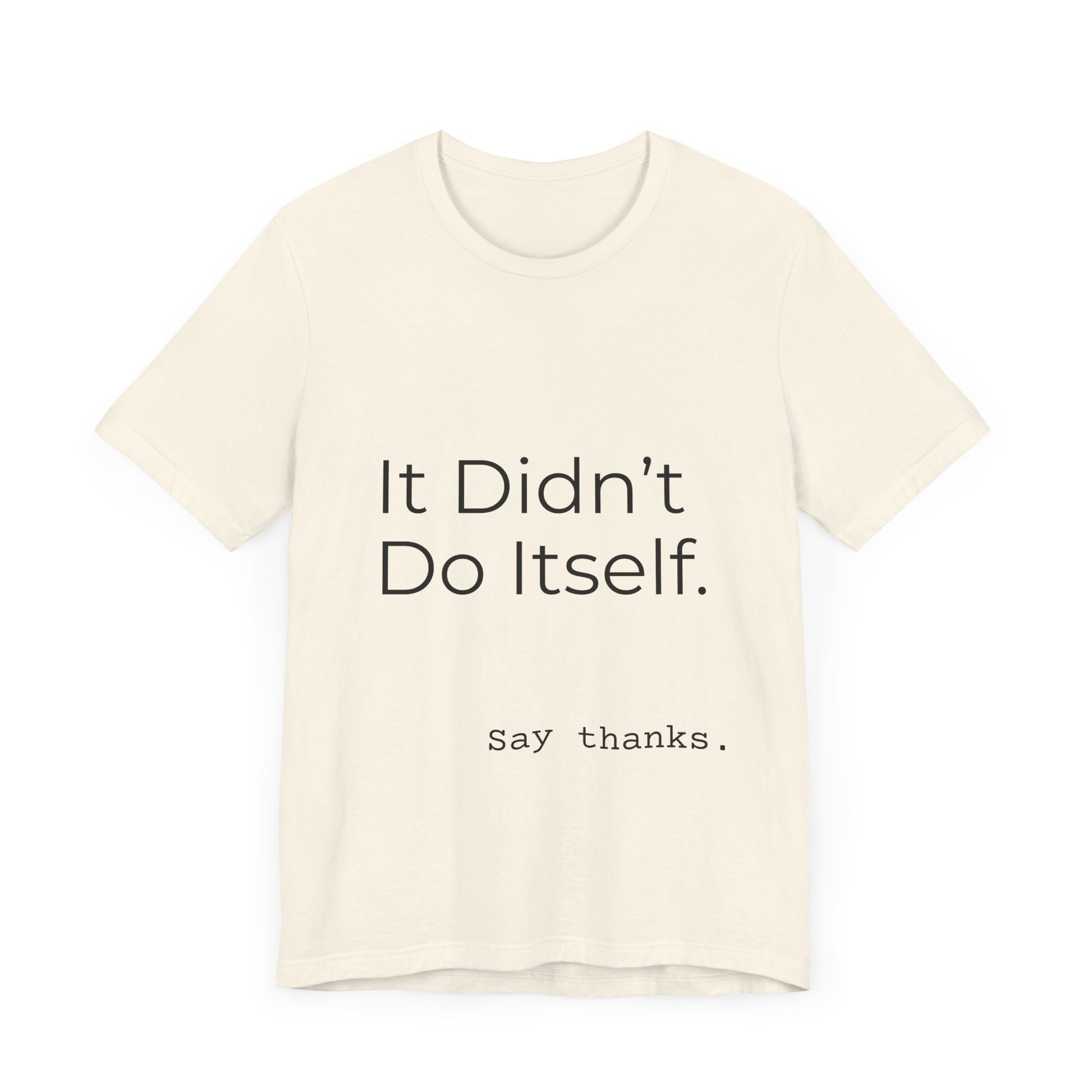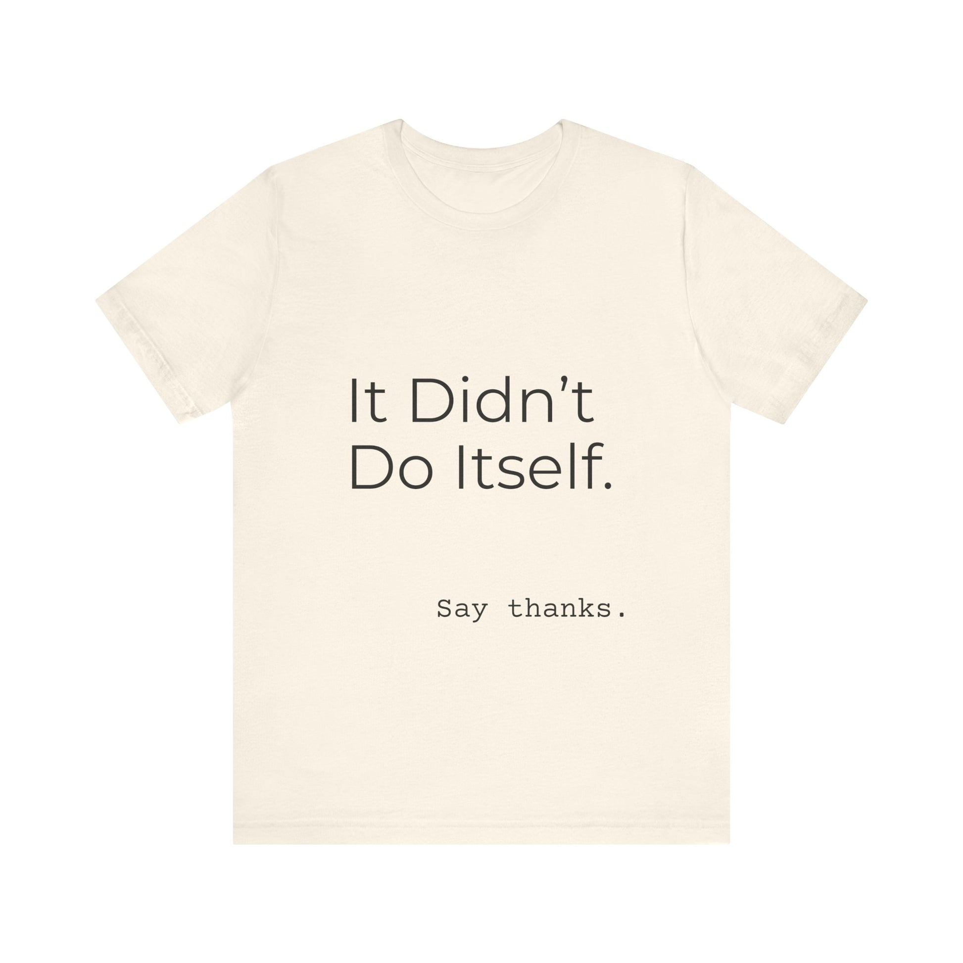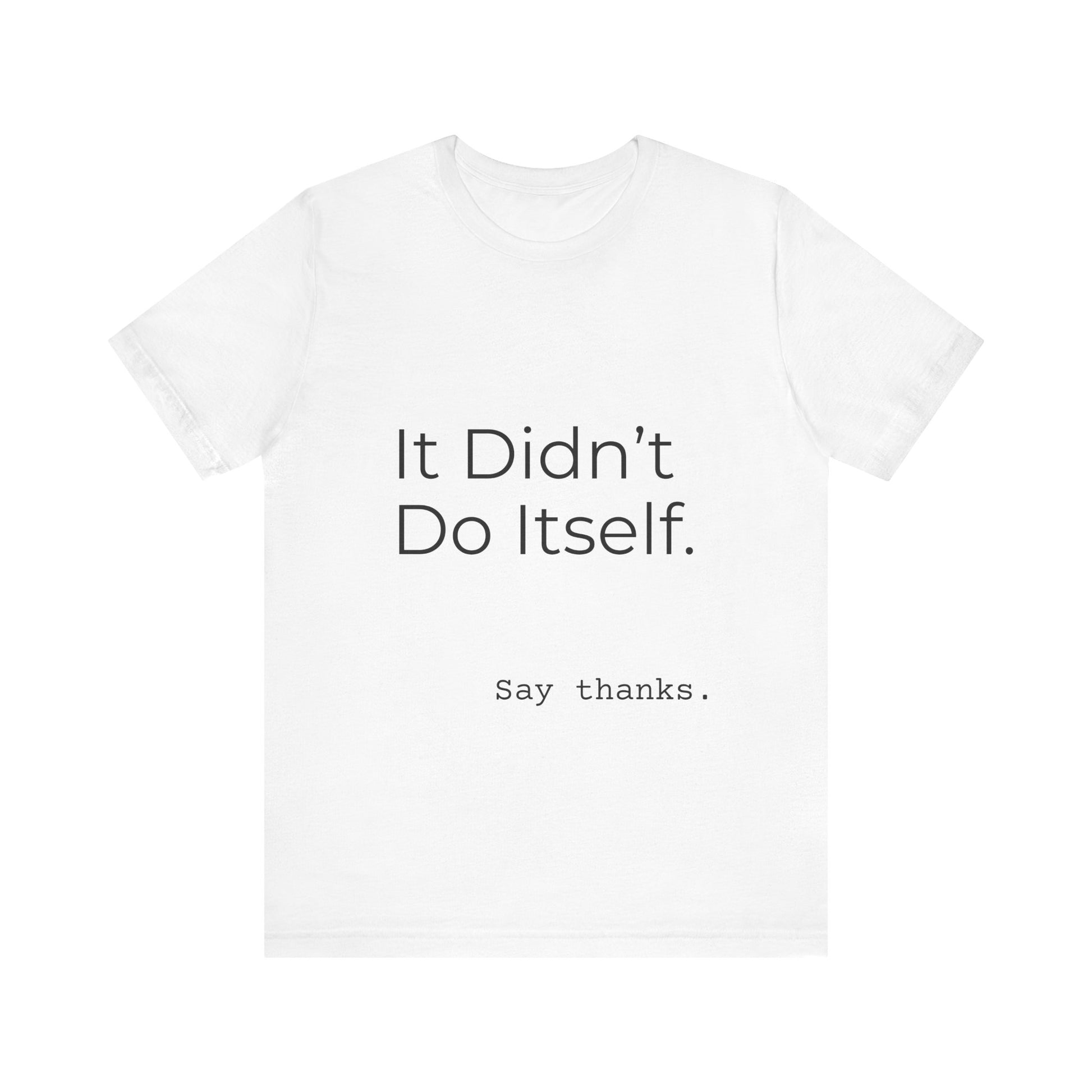 "It Didn't Do Itself" Funny Appreciation Shirt – Thank You Gift, Unisex Minimalist Tee for Mom, Dad, Roommate, Teacher