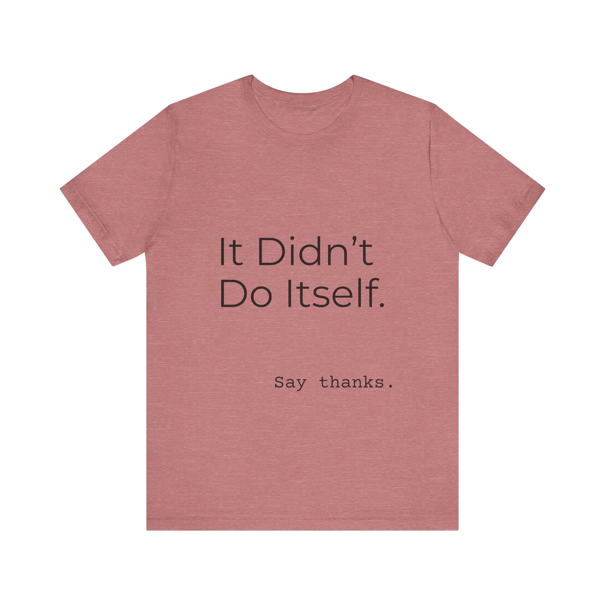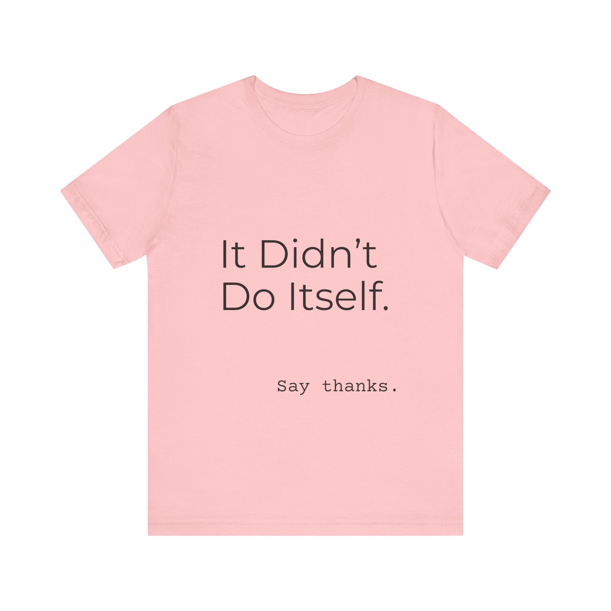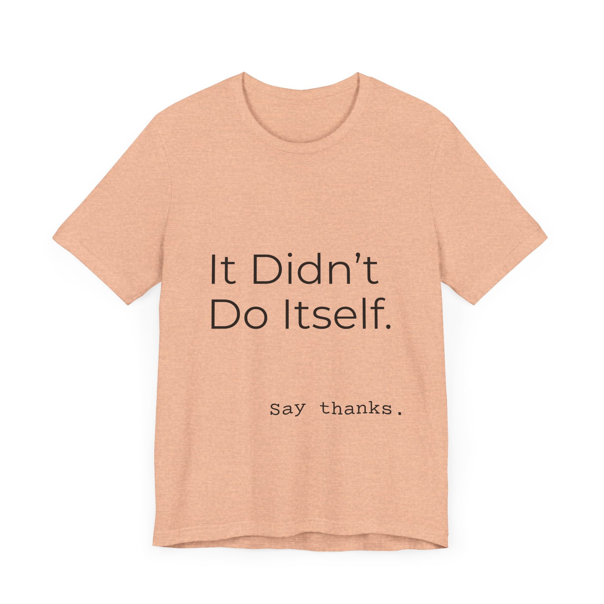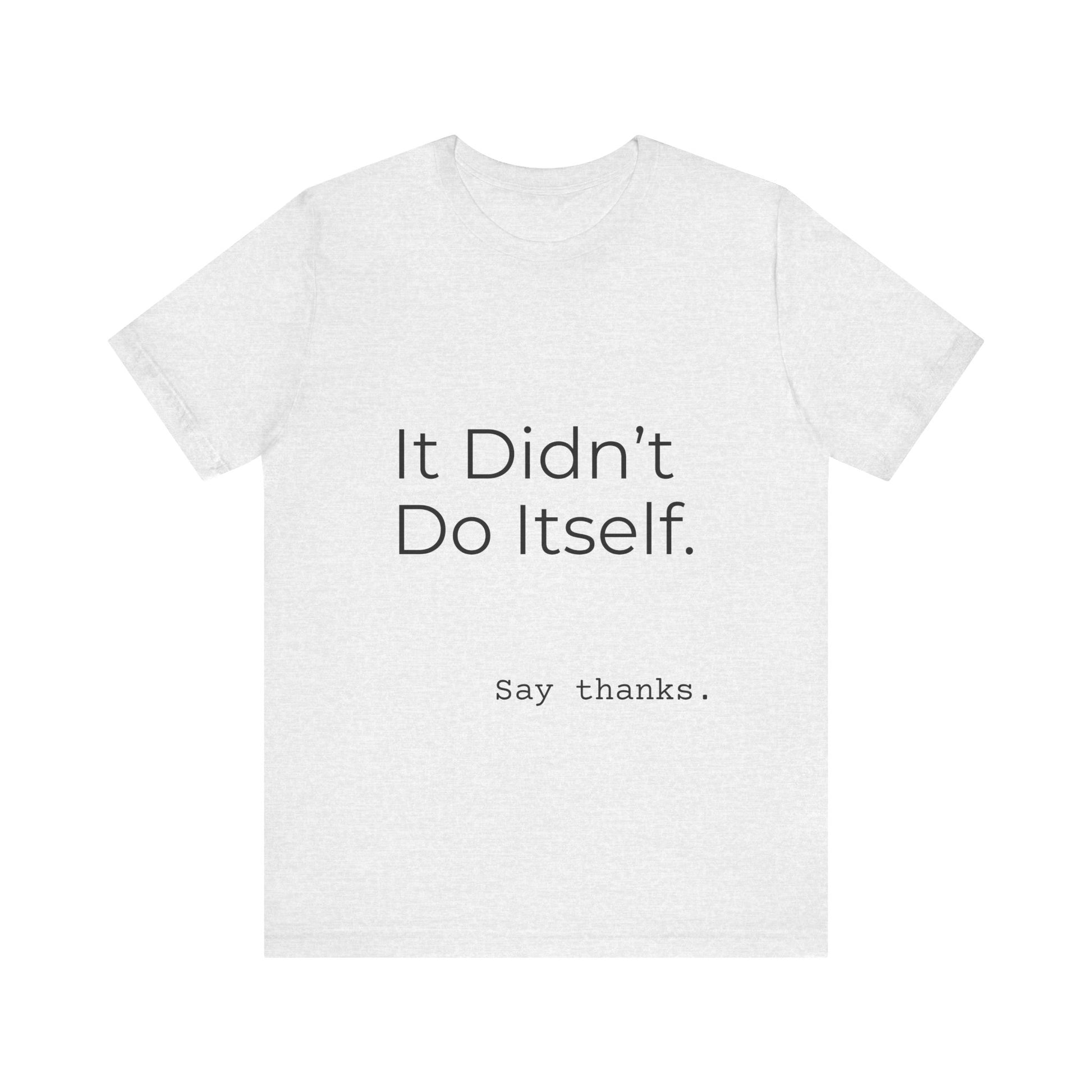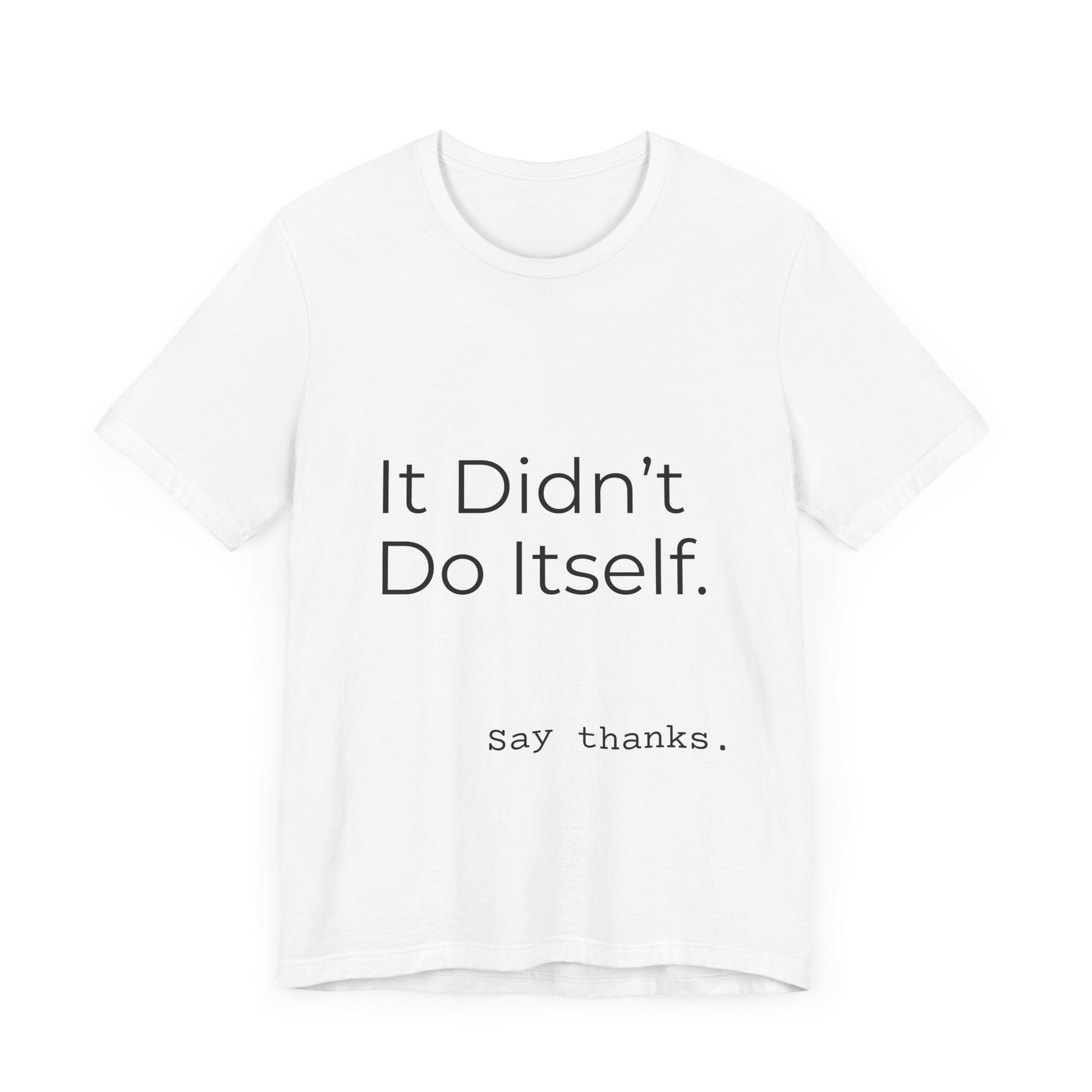 "It Didn't Do Itself" Funny Appreciation Shirt – Thank You Gift, Unisex Minimalist Tee for Mom, Dad, Roommate, Teacher