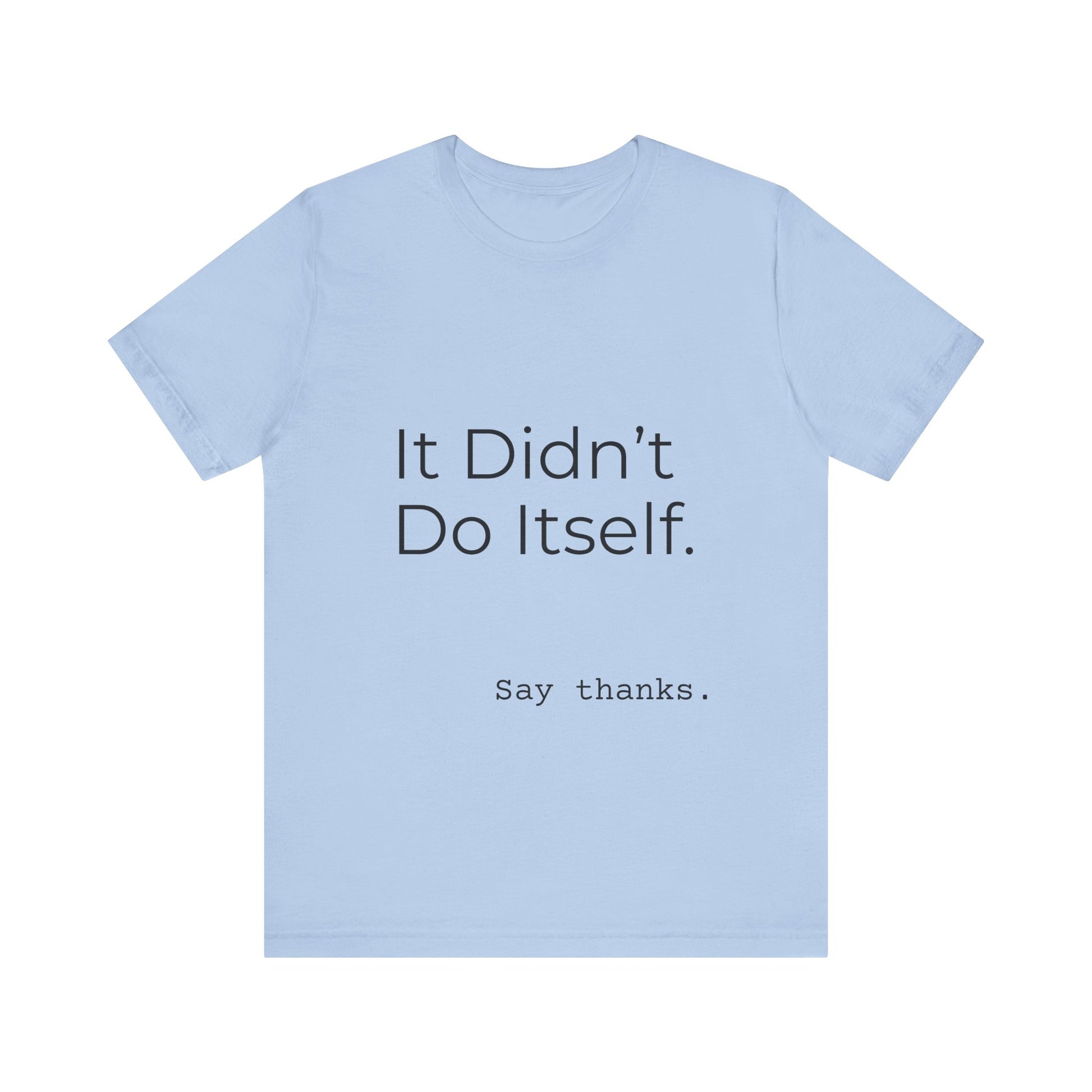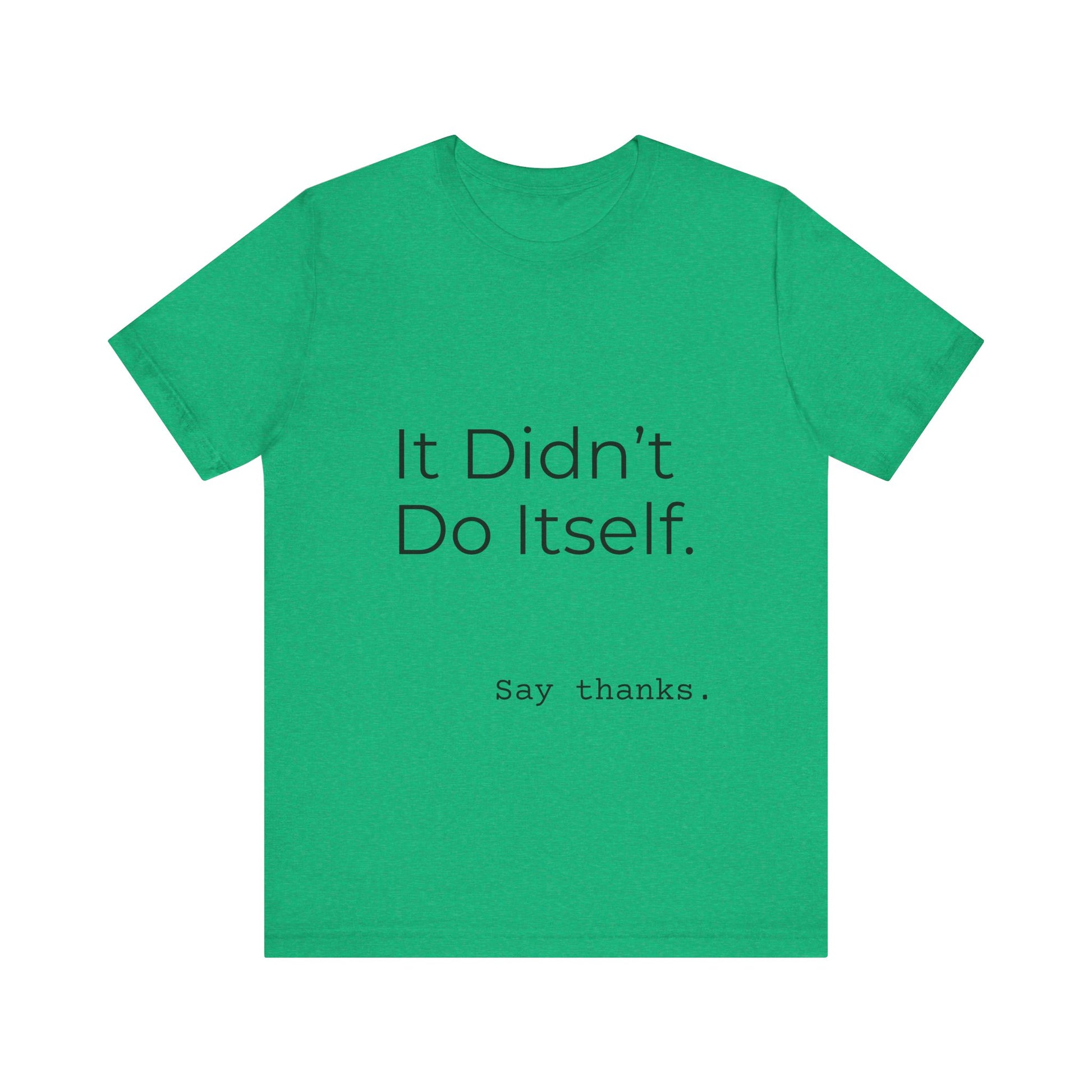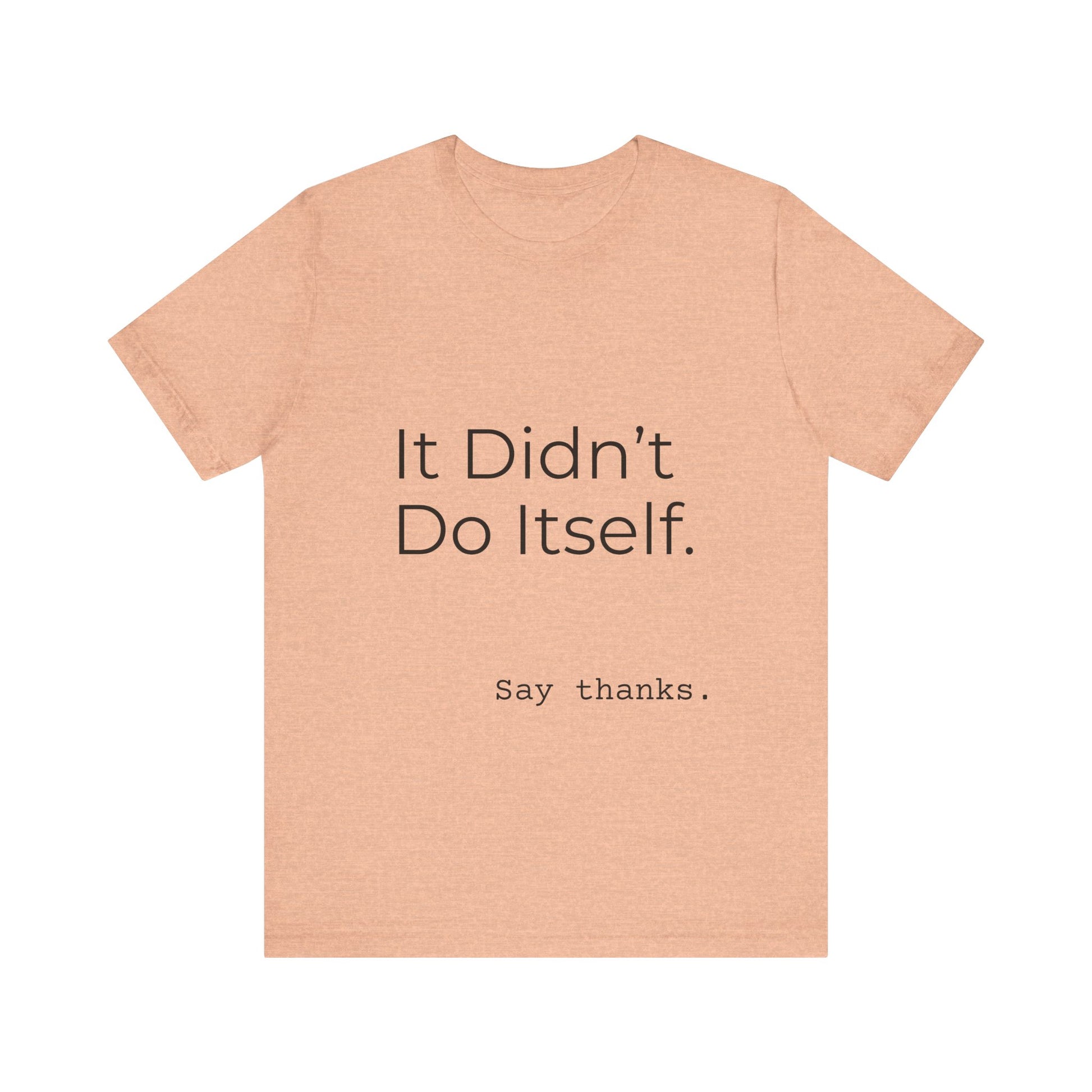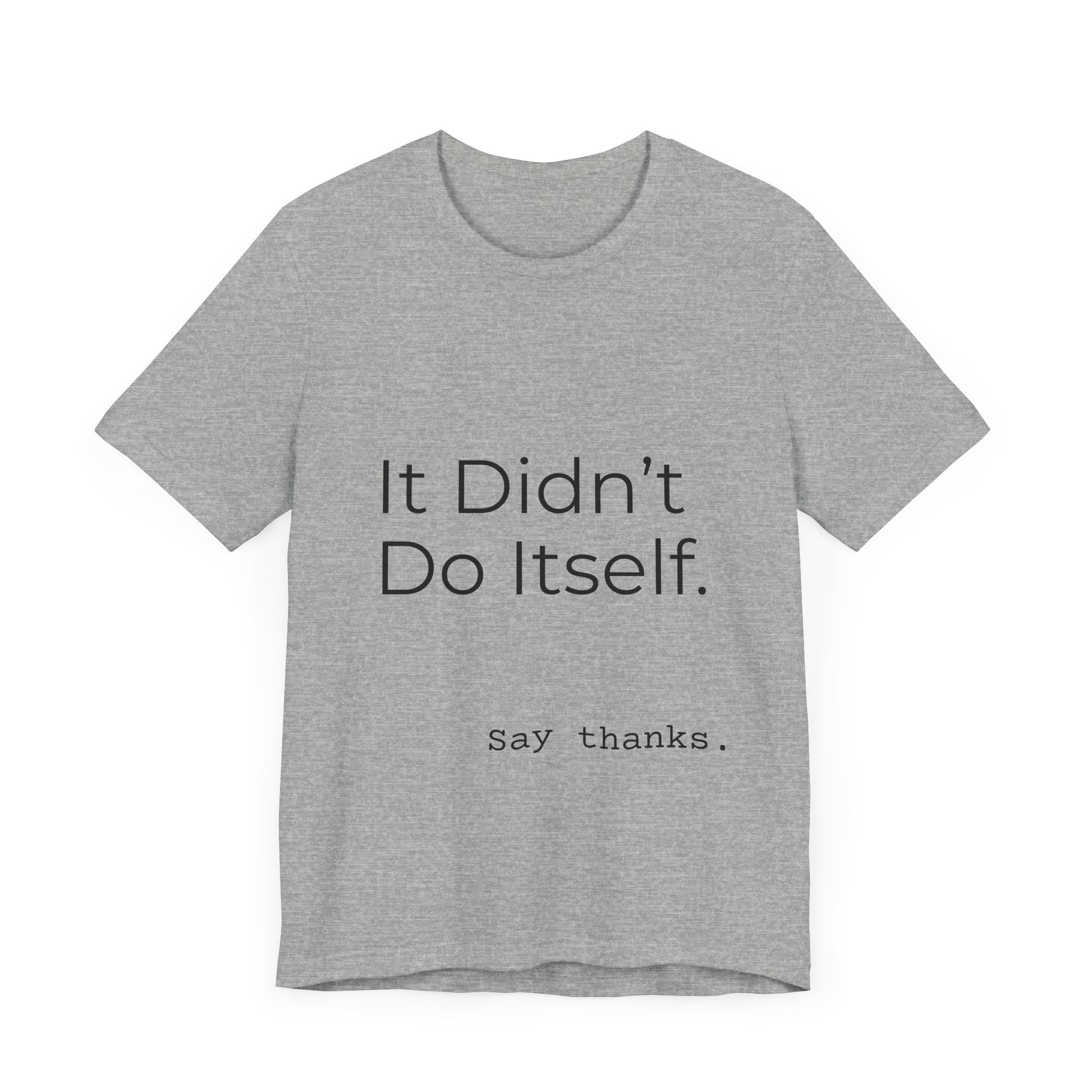 "It Didn't Do Itself" Funny Appreciation Shirt – Thank You Gift, Unisex Minimalist Tee for Mom, Dad, Roommate, Teacher